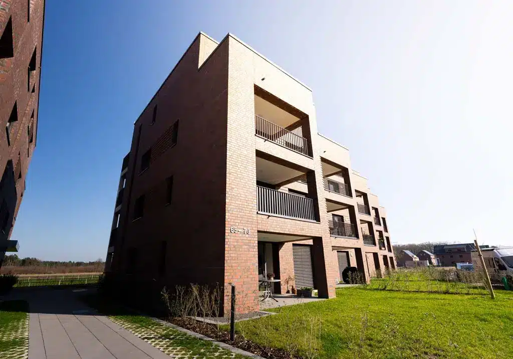Die Wohnung befindet sich in einem hochwertig errichteten Mehrfamilienhaus aus dem Fertigstellungsjahr 2025 im jungen Wohnquartier Huxburg in Senden. Das Gebäude überzeugt durch seine elegante Klinkerfassade, eine moderne Architektur und eine ruhige, gepflegte Wohnanlage. Hier entsteht ein angenehmes Wohnumfeld, das sowohl Ruhe als auch eine hohe Wohnqualität bietet.